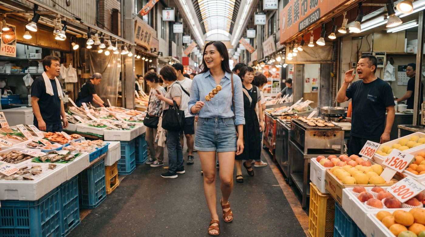 A convenience store breakfast (onigiri, yogurt, coffee) will run you ¥400-600. Street food like takoyaki (octopus balls) from a proper vendor in Dotonbori costs ¥500-800 for 6-8 pieces.